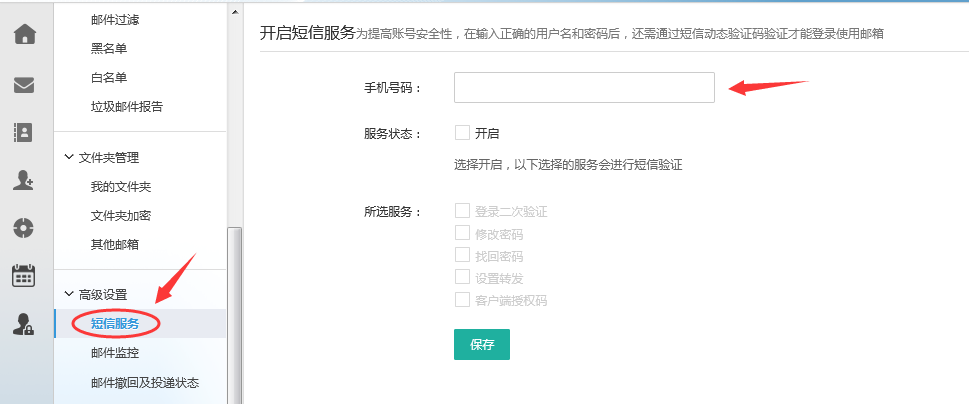 开启方法:登录用户邮箱网页端,点击设置-高级设置-短信服务-输入手机号绑定