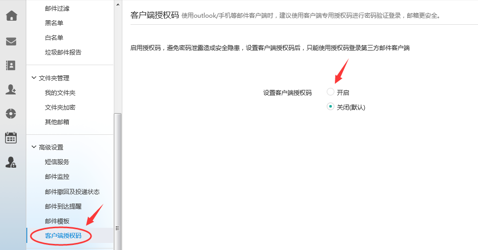 开启方法:登录用户邮箱网页端,点击设置-高级设置-客户端授权码-选择开启