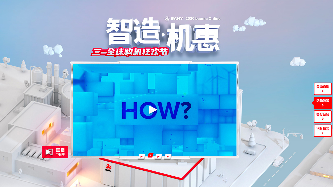 中企根据三一集团平台的营销战略及模式进行整体规划,构建了符合三一集团宝马展的综合数字营销平台,该平台对展会线上数字介质进行全面系统的管理,将三一重工重型机械设备产品,以生动形象还原应用场景,有效拉动用户体验;