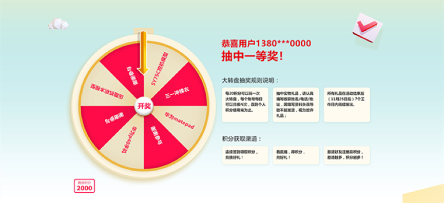 l 通过签到、积分抽奖、积分兑换、分享海报方式形成用户列表,聚集流量