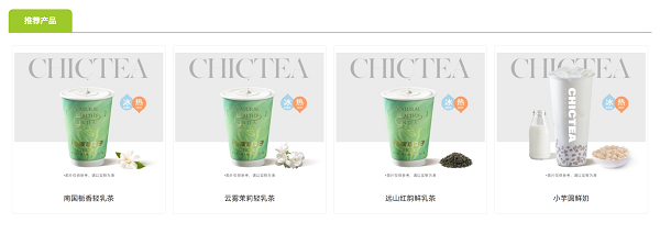 产品专区通过 “轻乳好茶系列”“热销产品” 等分类标签,配合图文混排的卡片式设计,既展示了丰富的产品线,又避免了信息过载。