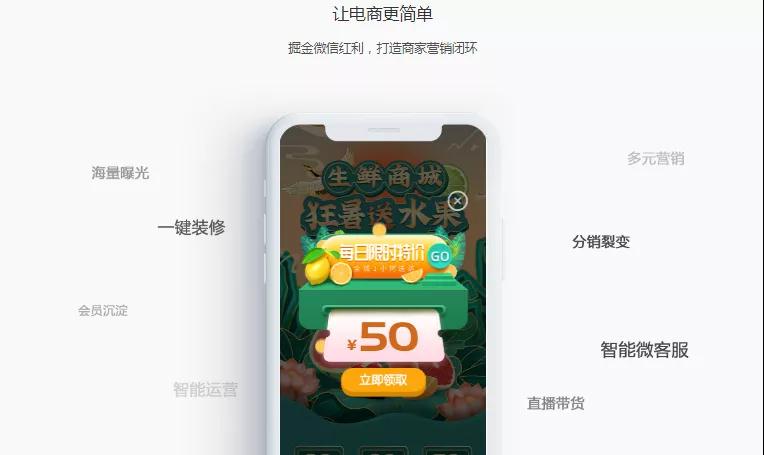 玩转营销,海量曝光:拼团、秒杀、N元N件等多种营销插件,提高店铺收益;
